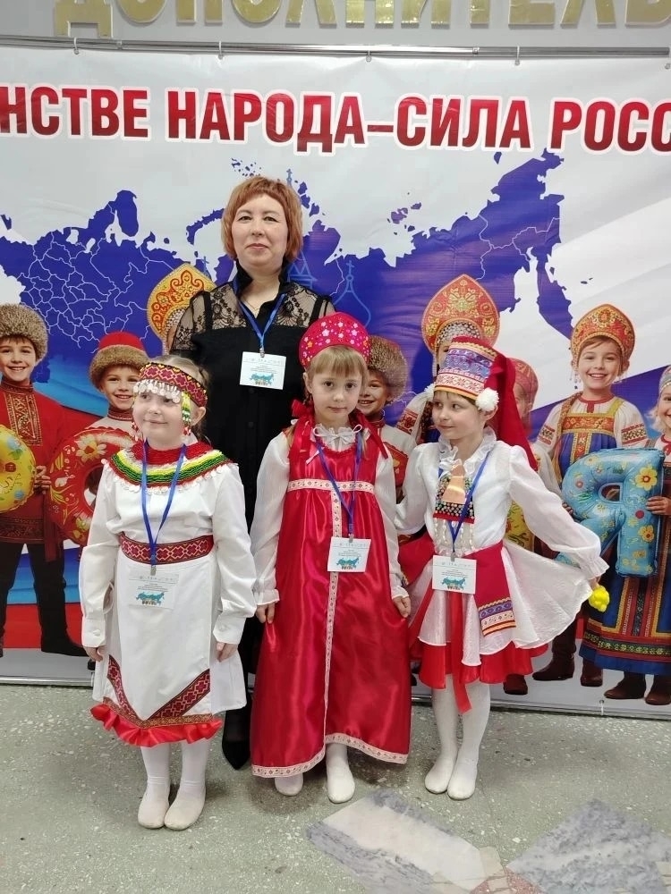 25 марта 2026 года в Центре дополнительного образования «Спектр» прошёл районный конкурс «Фестиваль детских проектов‑2026» на тему «В дружбе народов —единство России!». Этот день стал настоящим праздником культуры, творчества и детской любознательности, которая переросла в увлекательное исследование. Наши воспитанницы из старшей группы «Дружная семейка» — Кощенко Екатерина, Кайгородова Алина и Гельметинова Маргарита — под руководством воспитателя Неймышевой Ирины Александровны представили реализованный проект «Традиционные женские украшения народов России». Цель проекта заключалась в том, чтобы познакомить детей, родителей и педагогов с культурным многообразием нашей страны через изучение традиций и обычаев различных народов. Выступление началось с приветственного слова воспитателя, после чего юные исследователи представили свои находки. Девочки рассказали о традиционных украшениях трёх народов: русских, мордвы и чувашей. Катя представила русские украшения: кокошники, серьги и бусы. Она объяснила, что эти предметы не только служили украшением, но и выполняли защитную функцию — оберегали от злых духов. Алина рассказала о чувашских украшениях, включая масмак и шюлькеме. Эти элементы декора символизировали богатство и традиции семьи, отражая её культурное наследие. Маргарита поделилась знаниями о мордовских украшениях — сюльгамо и панго. Такие украшения рассказывали о статусе и силе женщины, подчёркивая её значимость в обществе. Все представленные аксессуары гармонично дополняли традиционные костюмы соответствующих народов. Дети продемонстрировали не только глубокие знания, но и творческие способности: они создали настоящие произведения искусства своими руками. Родители активно помогали в изготовлении украшений и поддерживали юных исследователей — это во многом способствовало успеху проекта. Проект «Традиционные женские украшения народов России» стал важным шагом в формировании у детей уважения к культурному наследию нашей страны. Он способствует укреплению единства и взаимопонимания в обществе. Воспитанница подготовительной группы Ефремова Алина со своими наставником — Никуленок Яной Николаевной защищали проект «Русский народный костюм». Алина рассказала жюри и участникам конкурса, что Русский народный костюм — не просто одежда. Это своеобразная книга, рассказывающая о традициях, обычаях и истории нашего народа. Его цвета, формы и орнаменты передают культурные особенности, а многовековая история отражает социально‑экономические изменения, религиозные воззрения и взаимодействие с другими культурами. В рамках проекта дошкольники познакомились с особенностями русского народного костюма — его функциональностью, декоративностью и символикой. В ходе реализации проекта ребята подготовительной группы: узнали об истории костюма, его видах (повседневном, праздничном, обрядовом) и различиях в зависимости от возраста и семейного положения носителя; изучили традиционные материалы (лён и другие натуральные ткани), цвета (белый — символ замужней женщины- матери, красный — цвет огня и защиты от нечистой силы, чёрный — символ вечного покоя и земли, зелёный — символ растительного мира, голубой — символ воды и неба) и узоры (геометрические фигуры, изображения солнца, звёзд, птиц, цветов и животных); п